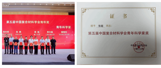 张超教授荣获第五届中国复合材料学会青年科学家奖以及中国复合材料学会科学技术奖二等奖。