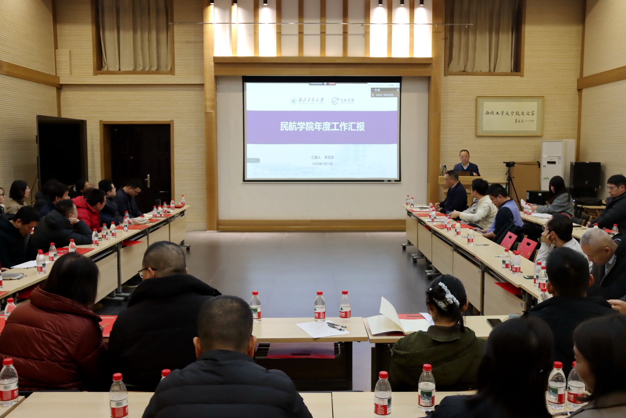 随后,院长李玉龙作学院2025年度工作总结报告。报告指出,过去一年是学院“十四五”规划收官之年,全院师生凝心聚力,在学科建设、人才培养、科学研究、师资队伍建设等方面取得显著进展,为“十四五”发展画上圆满句号。面对“十五五”开局新阶段,学院将紧紧围绕学校“一十百千”中期目标和“天下工大、世界三航”远景目标,明确学科建设目标,聚焦特色发展,系统谋划未来发展路径,持续深化改革创新,全面提升办学水平,为“十五五”发展开好局、起好步。