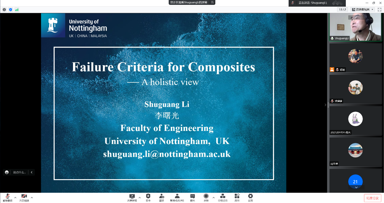 陈杨副教授邀请,英国诺丁汉大学李曙光教授于2022年7月4日至7日开展了题为“FailureCriteria for Composites”的线上学堂,本次课程依托巨乳人妻