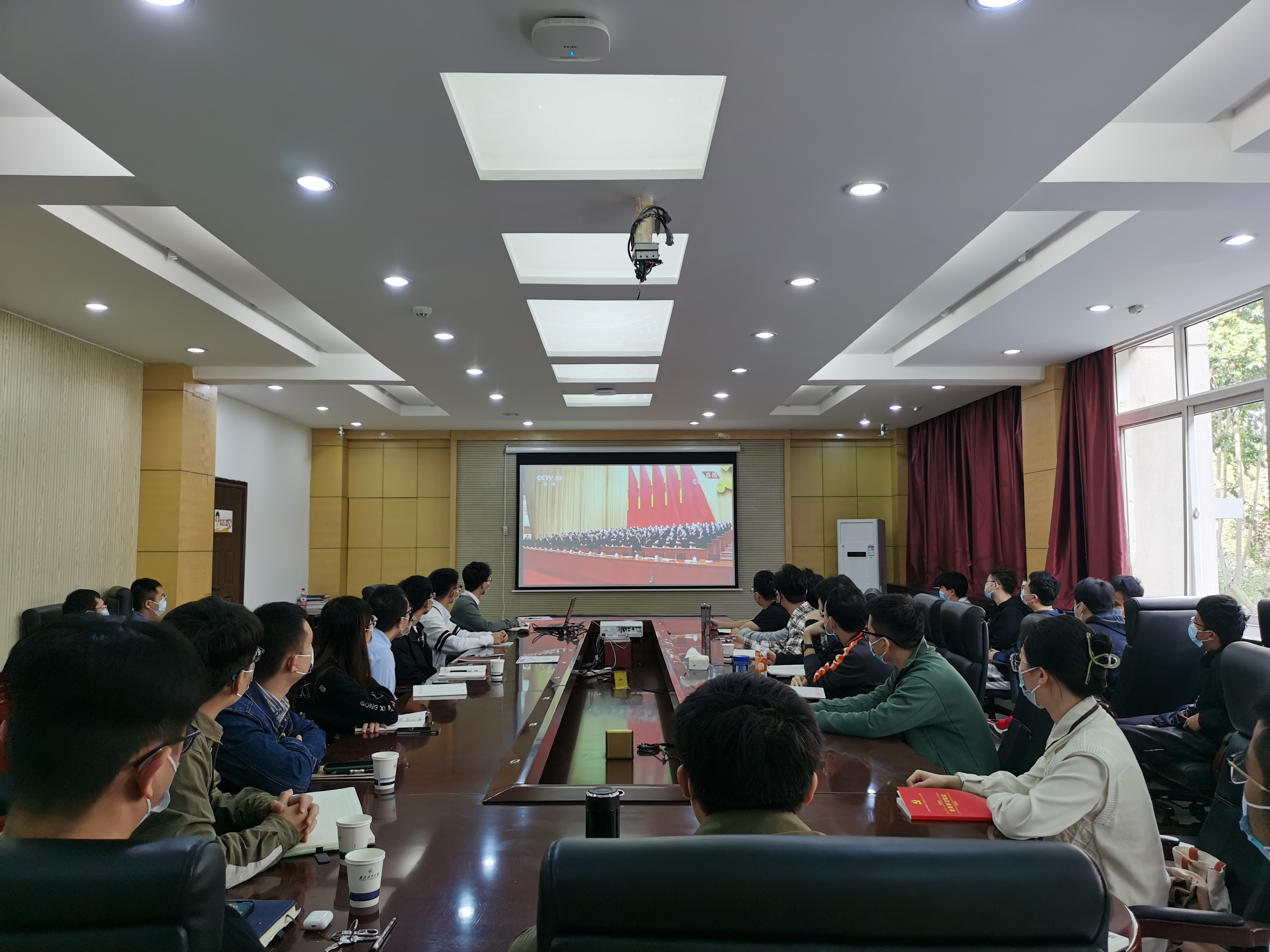师生党员以教研室和科研团队为单位通过电视、网络等形式收看开幕会直播