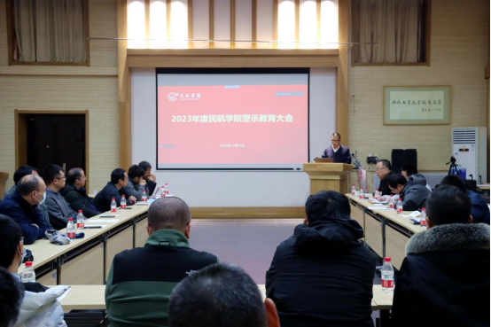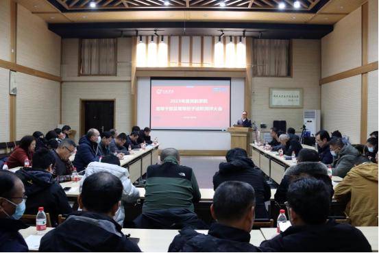 在友谊校区阶二教室、太仓智慧港C702室同步召开2023年度五、六级领导人员述职测评大会与警示教育大会,全院教职工和学生代表参加会议,会议由党总支书记闫伟主持。