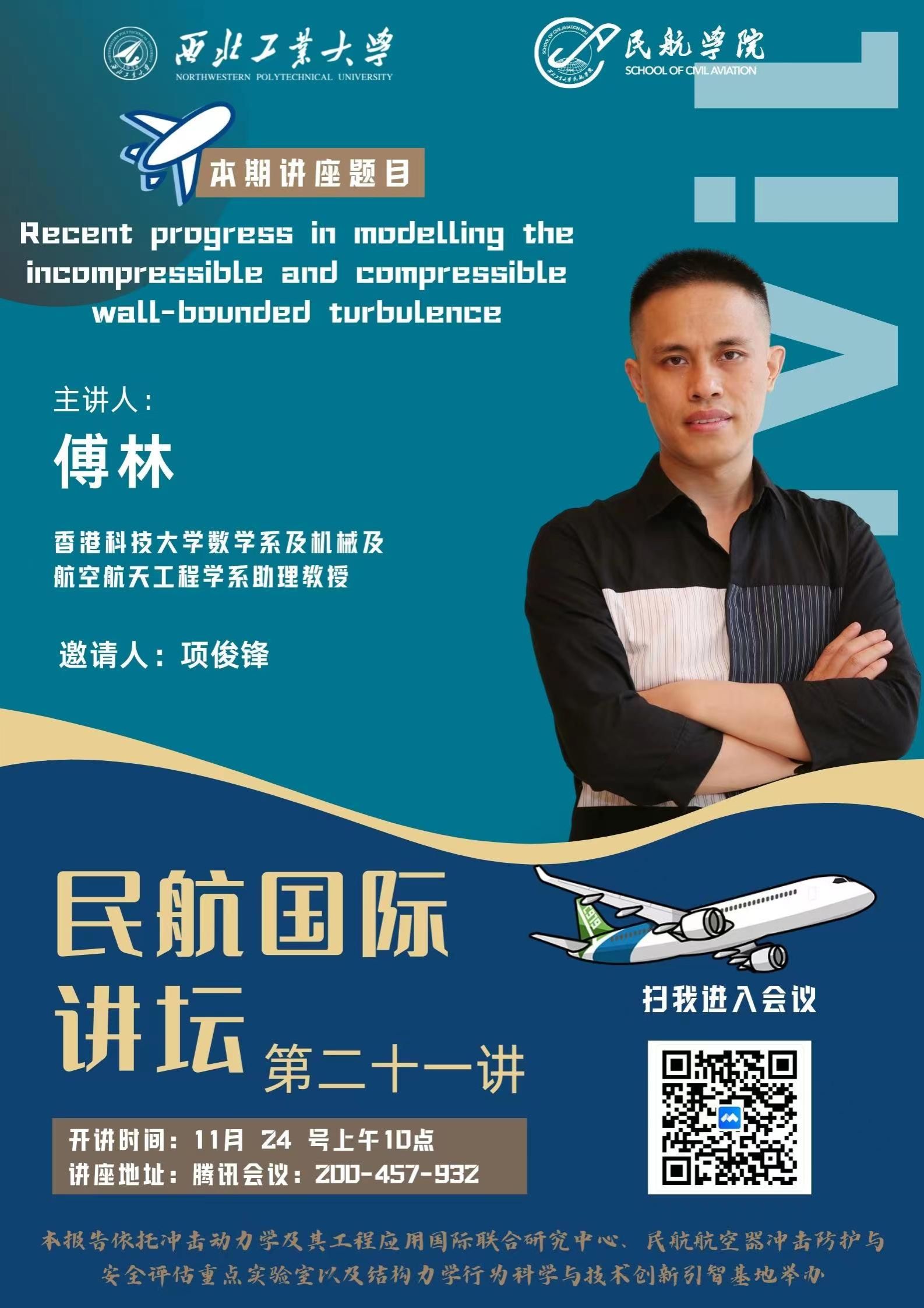 11月24号上午十点,我院拟线上举办“Recent progress in modelling the incompressible and compressible wall-bounded turbulence”专题讲座,届时欢迎各位老师同学参会交流。以下是讲座详细信息:
