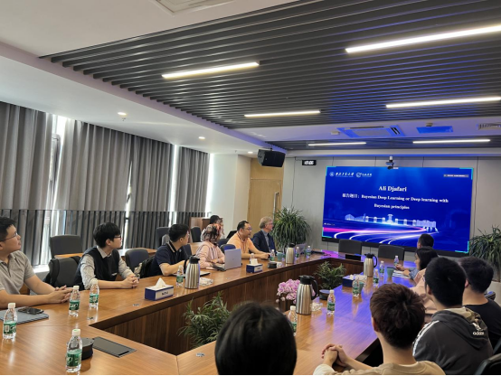 与会的学者和学生互相交流了各自的研究方向及相关工作进展,并围绕贝叶斯深度学习先验分布的选择、ROSI算法的计算速度提升、CFD计算与阵列信号处理结合、工业风机故障诊断等具体方向展开了深入的交流。另外,余亮教授邀请与会人员参观了巨乳人妻