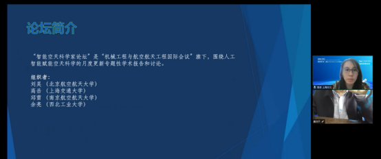 与航天学院联合承办,会议邀请到现任中国商飞上海飞机设计研究院试验验证中心主任、大型客机集成技与模拟飞行全国重点实验室副主任李正强博士做了关于“智能飞行”的主题报告。在线参会人员约40名,其中包括来北京航空航天大学的刘昊教授、上海交通大学的高岳教授、巨乳人妻