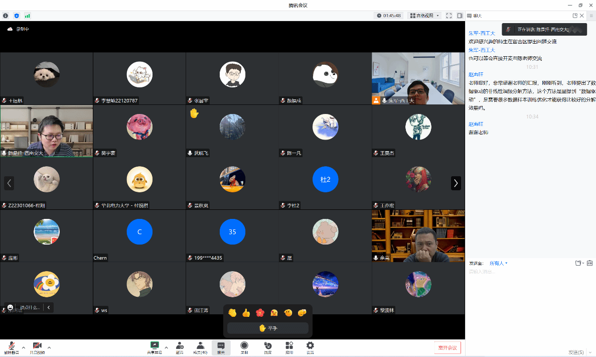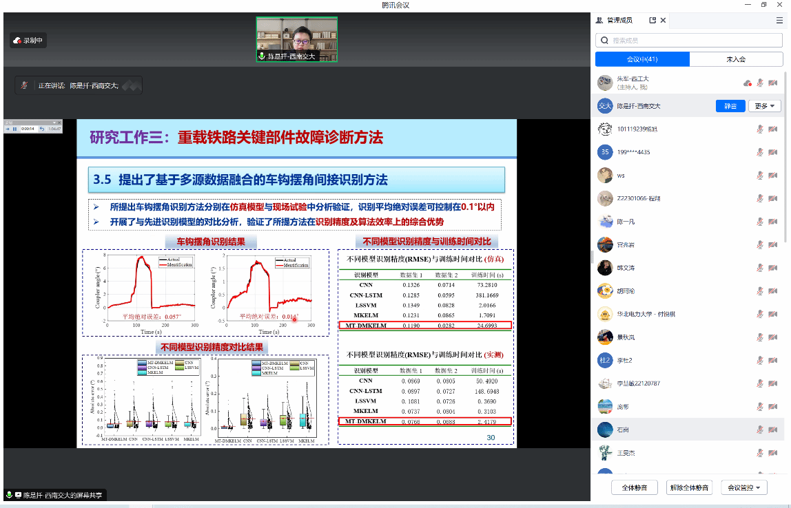 师生开展主题为“非线性调频分量分解理论及其在故障诊断中的应用研究”的线上研讨会,学院余亮老师和外校师生合计超过40多人参加了此次研讨会,研讨会由朱军主持。