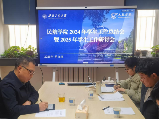 在毅字楼205会议室召开2024年学生工作总结会议暨2025年学生工作研讨会,党总支书记闫伟,学院学工干部以及各年级专职辅导员参加。本次会议由党总支副书记张龙主持。