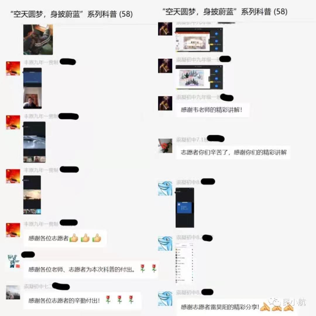 经过几周的准备,2020年4月3日下午,蓝堂的“主播”们通过QQ群直播的方式给崇凝初级中学和丰原镇九年一贯制学校的孩子们进行了航空科普。在这次志愿活动中,也活跃着巨乳人妻