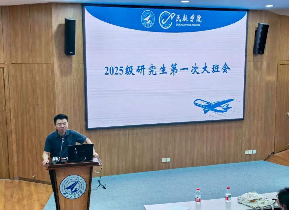 研究生培养特色,强调新生需从本科阶段的 “被动接收知识” 转向研究生阶段的 “主动探索研究”,鼓励大家在航电、飞设、适航等专业领域主动与导师沟通研究方向,积极参与课题组研讨,在学术交流中碰撞思维火花。同时,他特别关注新生身心健康,呼吁新生合理平衡科研与生活,通过体育锻炼缓解压力,以饱满状态投入学习和科研工作中。