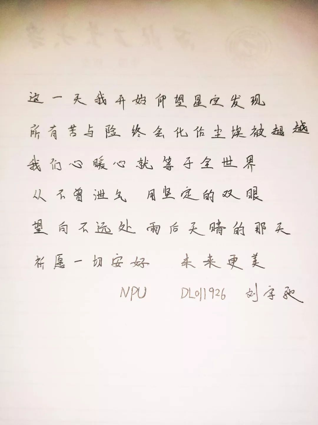 DL011926支部李尧雨:看到班级同学的手写祝福,更加让我认识到—虽然我们不能前往一线切实为需要的人服务,但并不代表我们就只能当一个旁观者,我们依然可以用自己的方式送去真挚的祝福,而这些话语也是对身边人的鼓励,激励着身边人众志成城,共克时艰!