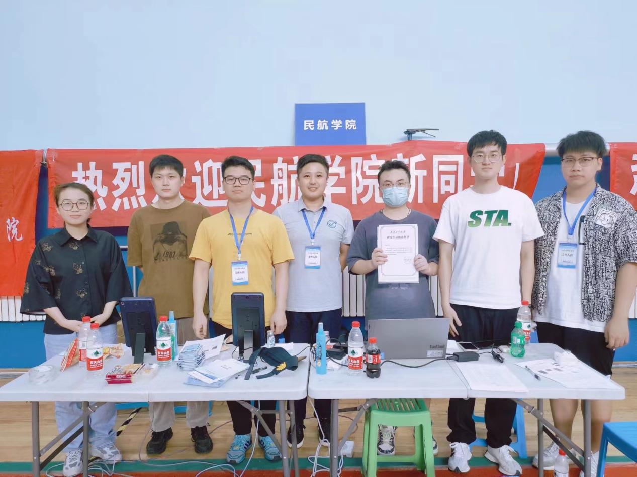 本次迎新地点位于友谊校区翱翔训练馆,在辅导员孟岭超老师的带领下,采取“2+1轮班”制度,在不同时段由三名高年级志愿者在现场进行迎新报道工作,并为同学们提供照片采集、一卡通办理与绑定、翱翔门户系统操作指导等服务。