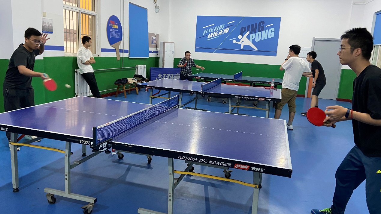 研究生会组织开展“破冰活动”系列之一的乒乓球赛。