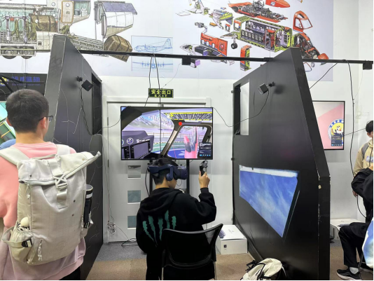 在全息体验区和飞行模拟训练区,同学们摇身变成飞行员,亲手操纵体验起降、飞行、滚转等场景,感受模拟飞行的乐趣,也体会飞行工作的复杂性。每当有同学驾驶模拟飞机安全降落,总能得到大家的欢呼和祝贺。