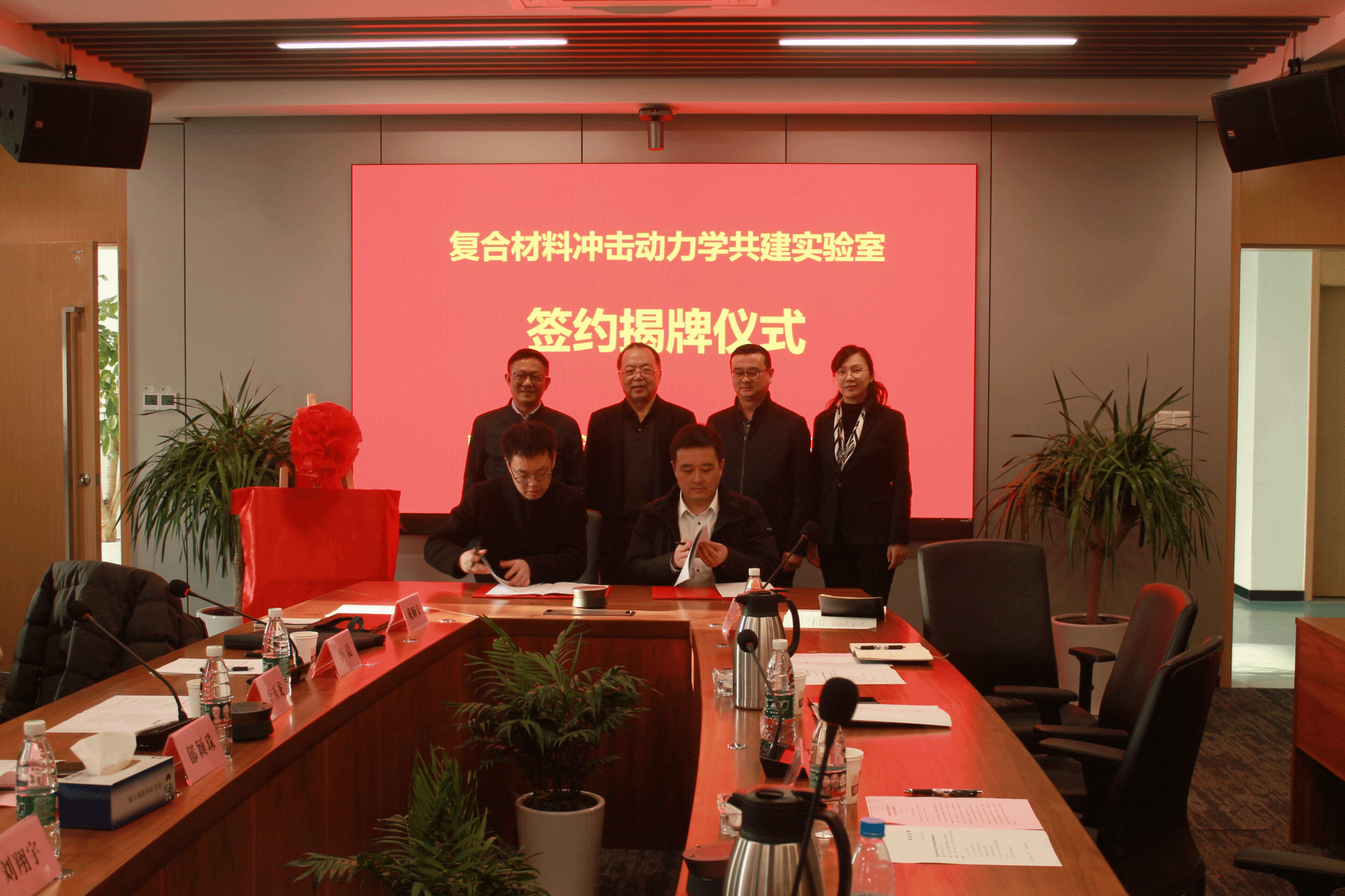 院长李玉龙和南京玻纤院院长王屹为“复合材料冲击动力学共建实验室”揭牌。