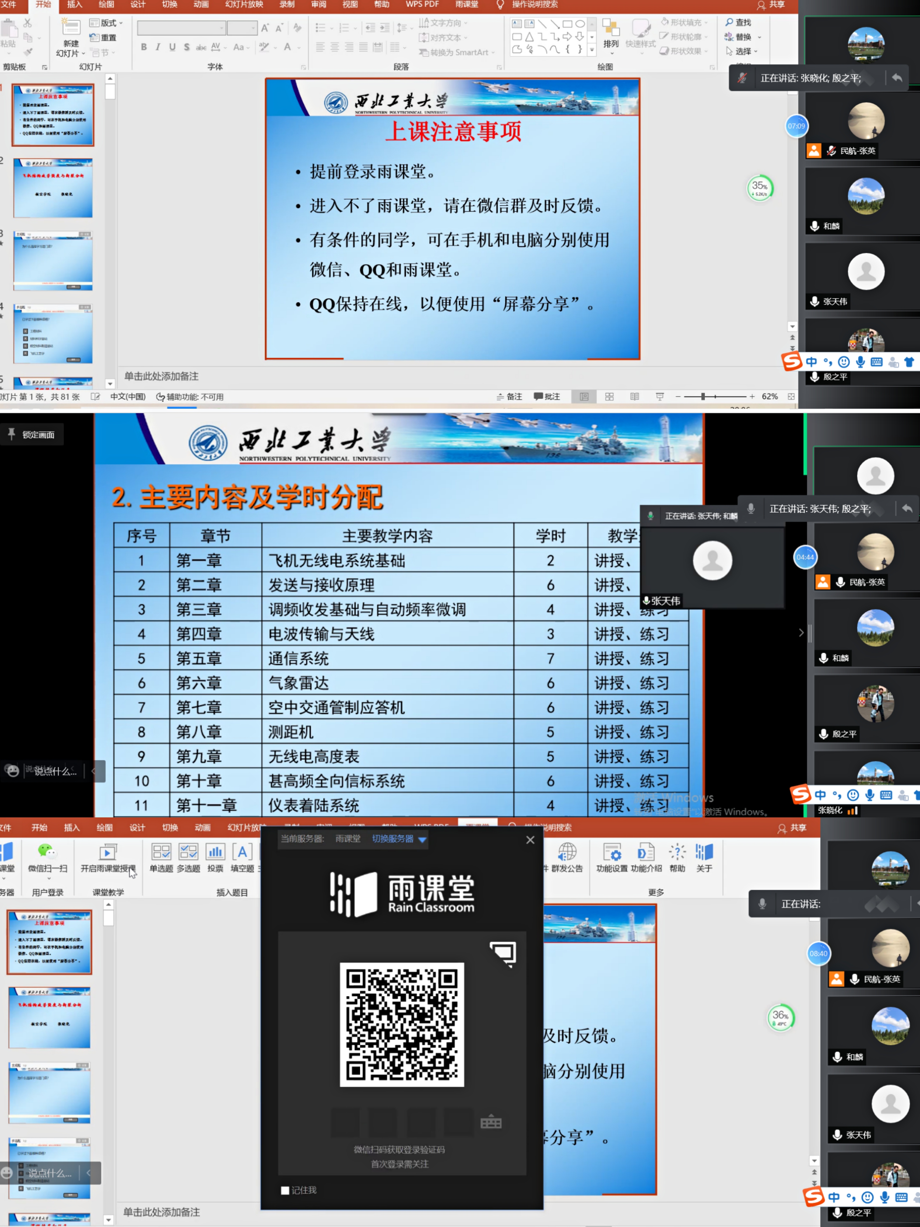 会上,各位有教学任务的教师,经过2021年12月28日召开的学院教学运行会议的通知,已经有了初步的准备,每位老师按照顺序介绍了各自课前准备情况以及在线演示课件使用情况,保证了在线教学过程中软硬件工具运行畅通、视频音频播放清晰度的问题。